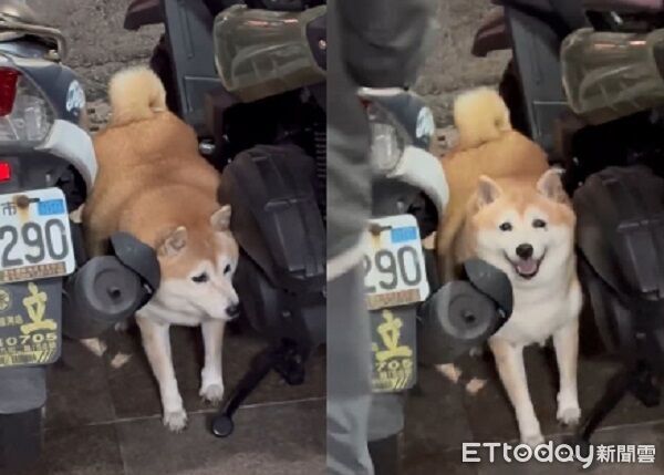 柴柴站在兩台機車間滿臉憂愁的低著頭,不知所措地東張西望,似乎是在思考自己明明是位靈活的胖子,為什麼會被一個小縫隙困住。後來原PO的爸爸看見毛孩出不來,趕快過去幫忙移開機車,當事柴看見救援出現立刻露出燦爛的笑容,脫困後踏著雀躍的腳步離開現場,讓飼主笑說「今天是被摩托車卡住的一天,恭喜我爸拯救了胖柴犬」。