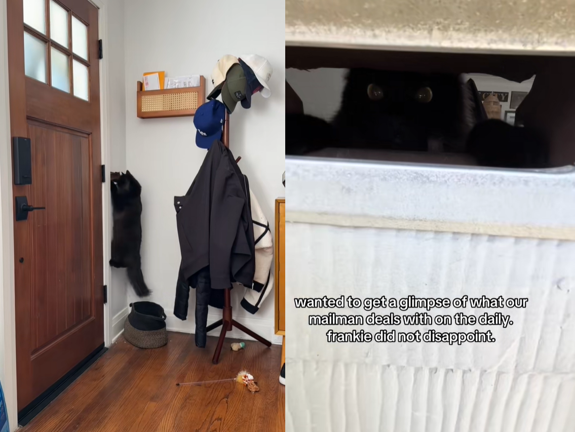 法蘭基的飼主在Tiktok@frankieunsupervised分享一段影片,只要郵差上門送信,黑貓法蘭基就一定會在門口攔截,這已是幾乎每天上演的插曲。從門外的監視器能看到,郵差想把信投遞進信箱,卻怎麼試都塞不進去,總會被一股「奇異力量」拒於門外,而家門內的畫面一樣精采,法蘭基用爪子勾住信箱,對外面嘶嘶叫,彷彿在守護家裡不被外物入侵,連媽媽都無奈地說「這位郵差應該被加薪」。