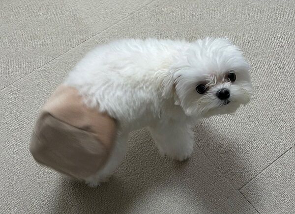 白飯發現情況不對勁後,而是默默走到爸爸身邊站好,乖巧地用眼神請他暫時放下工作,家裡另一隻叫做隔間肉(ハラミ)的狗狗還在看熱鬧。只見白飯她尾巴突出身體末端的那一小節,剛好將玩具穩固地卡在屁股上,造成現在想逃也逃不了的窘境。目前這篇可愛的貼文已在X累積超過95萬次點閱。