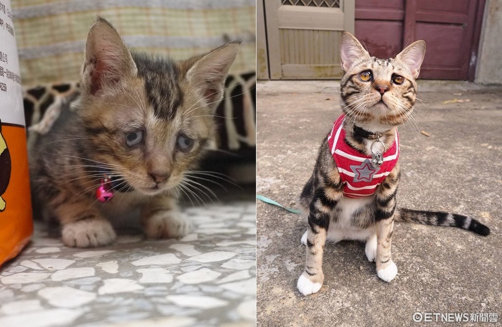 阿肥的個性相當友善,親人又親貓,沈小姐形容不管是比牠大的狗、或是和牠差不多大的老鼠,阿肥都願意跟對方玩,也很喜歡到戶外散步。前陣子臉書回顧看到2015年阿肥終於有了進展、眼球露出來的照片,也讓沈小姐更加確信自己當初的決定是對的,幸好一直以來都沒有放棄這個孩子。