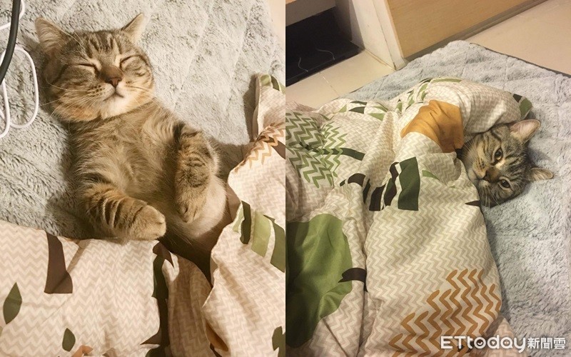 ▲▼阿尼基會自己依據溫度決定要蓋多少被被。(圖/飼主Vicky提供)