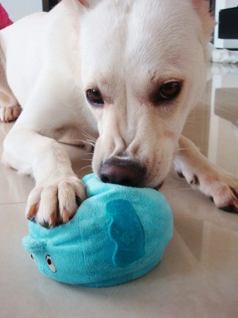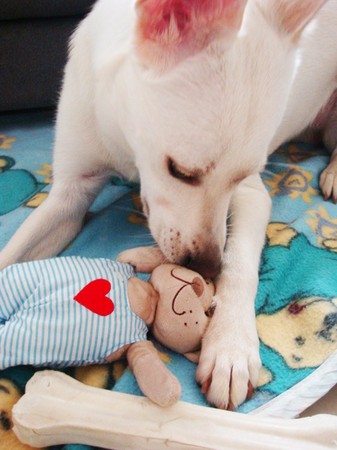 ▲Chloe’有次把最喜歡的泰迪熊娃娃「分屍」後,玩玩具就變得很淑女,絕對不會凶狠的大口咬住或亂甩,都是小口小口的「輕啄」。(圖/CACHE-CACHE提供)