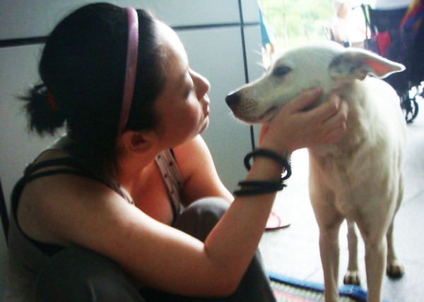 回想起相遇時的情境,郭芳伶說,「我和朋友躲在樹下,約10公尺左右的前方看見Chloe’在閒晃,我輕叫牠過來,牠走到我身邊後,就把頭放在我的腿上,但一下子就跑走了,之後又回頭找我們,不忍心讓牠獨自流浪,所以我跟牠說,『如果你跟我回家,我就養你』,而Chloe’就像聽懂似的,淋著雨,跟著我走了將近5個小時的路程,沿途看獸醫、選購需要的用品,一步都沒離開。」
