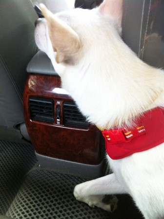 ▲Chloe’坐計程車時,一定要把頭放在車子扶手上。(圖/CACHE-CACHE提供)