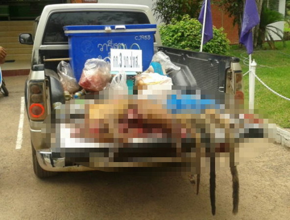 根據泰國野生動物友善基金會日前在臉書PO出的消息指稱,泰國當地警方之前在東北部的汶干府(Bueng Kan)邊境進行臨檢,攔下一輛由一對夫妻駕駛、準備開往寮國的小貨車檢查,沒想到竟在後車斗發現許多野生動物屍體,其中包括果子狸、鹿及麂,且大部分的屍體都遭到切割,車上的大保溫箱內還裝有不少屍塊。