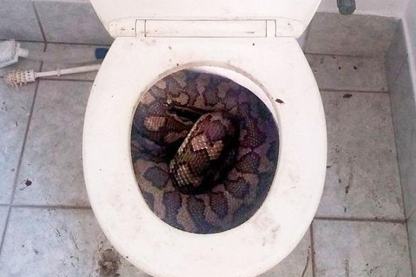 據CNN報導,伊里亞德•巴德(Elliot Budd)是住在昆士蘭(Queensland)北部城市的抓蛇人,過去的兩周裡他已接到兩次電話,懇請他出馬取出窩在馬桶裡的蛇,一條長3公尺,另一條也有2.4公尺;而且從馬桶裡抓蛇並不容易,因為這些生物能緊緊吸附在馬桶底,但他還是成功的在不拆開馬桶的情況下取出了它們。