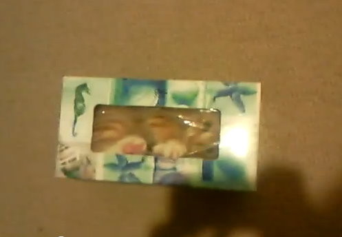 ▲「紙盒貓」躲入面紙盒裡,一副調皮搗蛋的臉。(圖/取自YouTube)