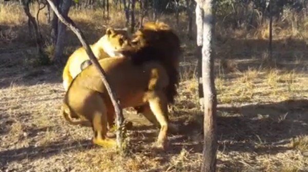 情侶之間偶爾來點小小的「惡作劇」或許能夠增加甜蜜感,而網路上最近瘋傳著一部有趣的影片,辛巴威一隻公獅尚格(Shungu)慵懶地趴在地上享受日光浴,沒想到牠的女朋友沙妮(Shani)卻悄悄從背後接近,屁股突然被輕輕拍一下,讓牠嚇到忍不住發出一聲低吼,原本威風的模樣瞬間崩壞。