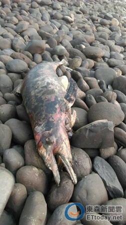 彰化王功海域18日上午驚見一隻鯨豚腐屍!一名吳姓漁民通報在後港溪2號水門附近堤岸發現一鯨豚屍體,趕緊通報王功安檢所,經中華鯨豚協會到場鑑定後,確定牠是瓶鼻海豚,眼窩處空洞不見眼球蹤跡,渾身遍布傷痕,研判已死亡多日,死因待查證,目前已送往成功大學進行後續研究。
