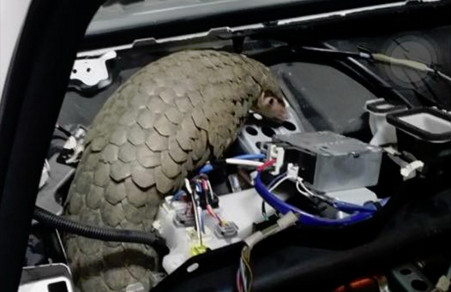 有網友在臉書「爆料公社」貼文表示,朋友在花蓮市的修車廠接到一台車,原來是有隻穿山甲卡在車子面板下的零件中,不知道該怎麼辦,只好通知動保協會幫忙。這組穿山甲受困的照片引來大批網友關注,並且都很訝異牠怎麼會在那裡。