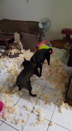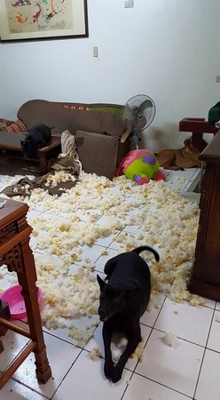 女網友事後提到,家中三隻狗狗當中,就屬小三最調皮(趴在桌上的那一隻)。小媽和小三都很過動,大黃就比較乖;女網友說當時回家看到那個情況也當場傻眼,但也只能默默地將環境重新打掃整理一番。