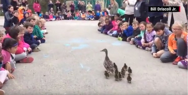 美國密西根州一所小學,日前出現了感人的一幕。一隻母鴨常駐在這裡超過13年,學校師生們也都樂於和牠互動,甚至還觀察母鴨的所有行動。母鴨後來生了一群小鴨,學校特地開闢了一條專屬道路,讓牠們可以安全地通過校園。