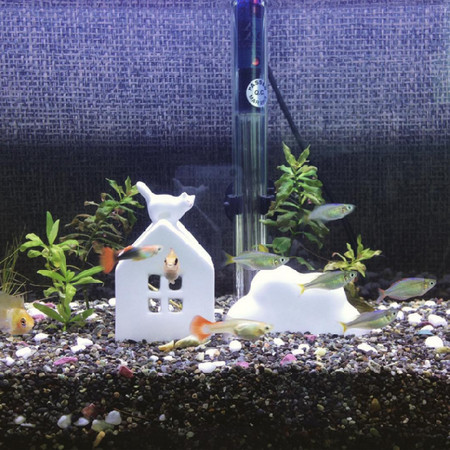 也可以放在魚缸當作小魚們的家喔!白色做為裝飾相當顯眼呢!