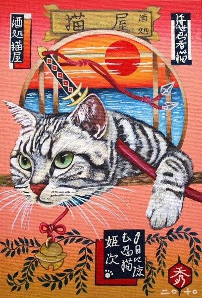 這一系列的作品都是由日本的畫家田中秀治所創作的,他是一位出身於福岡的畫家,因為本身非常喜歡貓咪,也經常會在部落格上分享養貓的大小事,所以作品都是以貓為主題來進行創作,並加入了浮世繪的風格,在貓咪相關的作品當中可以說是非常的獨樹一格。