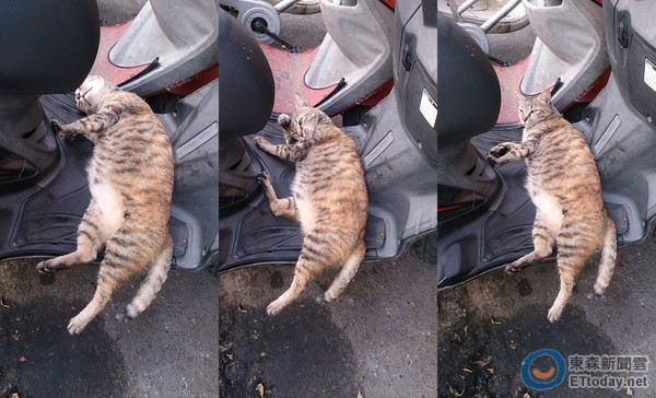 照片中,虎斑貓大剌剌地躺在機車踏板上,熟睡到幾乎「翻肚」,連車主準備要牽車了,牠仍不打算離開,甚至慢條斯理地舔起手手,簡直將「喵娘娘」的霸氣發揮到淋漓盡致,讓趕著上班的Sam只能在一旁苦苦等候。