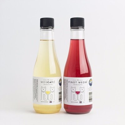 共有兩個口味可供愛貓選擇,"Pinot Meow"是紅酒, "Moscato"則是白酒(喵來喵去的名字是不是超可愛)。