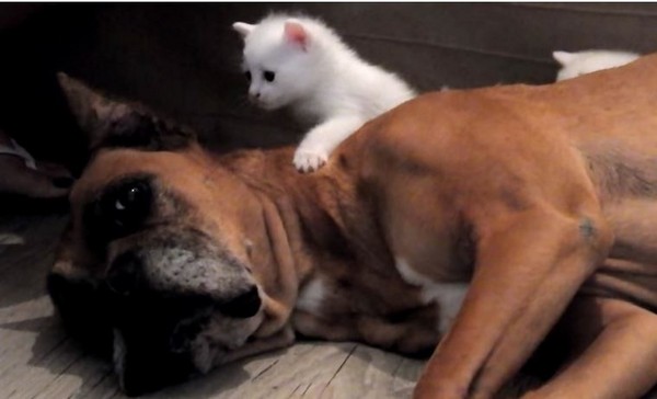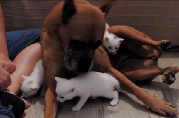 雅典有隻狗狗徹底體現了何謂「把愛傳下去」!拳師米克斯Gina因曾經遭受虐待並失去孩子,十分理解守護不了自己孩子的痛苦,於是將這份愛轉移到路邊浪喵Lucy身上,更是視如己出地照顧起貓咪一家。