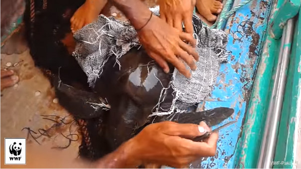 一名叫Amir Rahim的漁夫,在離岸邊180哩處看到「不明物體」漂流擺動,起初他不知道是什麼,待船身靠近後才發現是一隻「困在塑膠袋太平洋麗龜(olive ridley sea turtle)」,Amir Rahim見狀後立即跳進海裡將牠抱上船,並開始小心謹慎的將纏繞在海龜前腳的塑膠袋割開,讓牠掙脫枷鎖,以自由之身回到海裡。