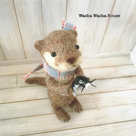 而他的羊毛氈主角就是這位~活潑可愛的水獺!sada平常都是在工作的閒暇時刻,製作這些小巧可愛的玩物。