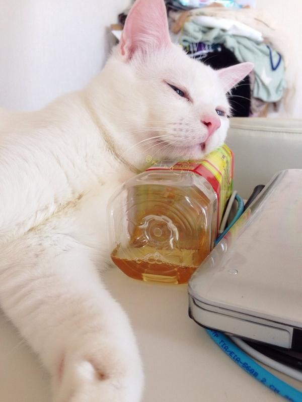 有東西可以靠著下巴,不知不覺眼皮就變重了….(結果主人口渴得半死不敢拿)