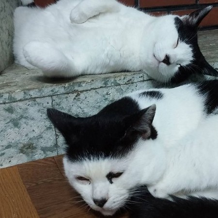 另外一隻有類似花色的貓咪是Noel,他們倆兄弟常膩在一起,就連睡覺也不例外,而Atom就算睡覺也不會把帽子摘掉哦~
