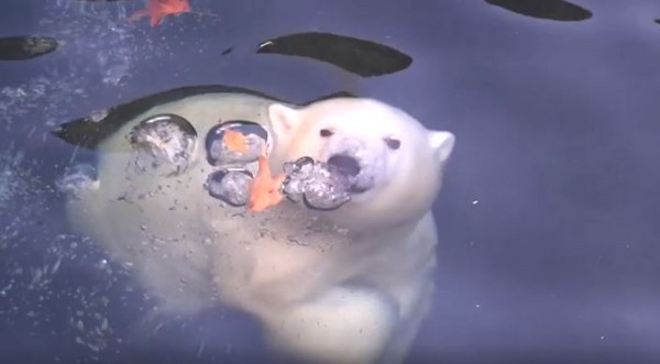 下個月就要滿1歲的Nora已經逐漸適應奧勒岡動物園的生活,園方12日也PO出牠第一次進到北極熊區開心玩耍的影片。只見Nora在一片一開始就直接跳進大水池中,還先在水面下小試身手,沒過多久就吐著泡泡冒出水面,下一秒翹起屁股就一頭栽進水池深處。