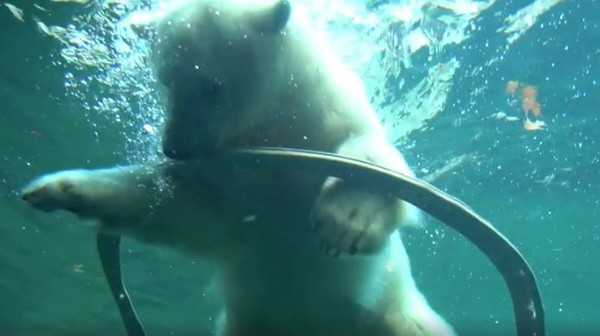 美國奧勒岡動物園的「準明星」北極熊Nora又有新影片啦!第一次真正進到北極熊園區的Nora,馬上興奮跳進大水池「潛水」,一下子潛到底部好奇地東咬吸咬,一下子又在水面下吐氣冒泡,當然,上岸之後也免不了要來幾次招牌的「用臉蹭冰」,開心玩耍的模樣萌度爆表。
