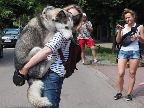 大狗狗的膽子有時候和體型剛好成反比!國外一隻叫做塞西的月月哈士奇就被拍下牠男子氣概全失的一幕!原來牠在散步的路上遇到了一隻狗狗,結果害怕的牠竟然要求馬麻抱抱!路人全都笑翻啦~