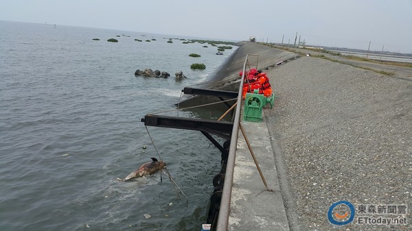 海巡署第四一岸巡大隊所轄南海尾守望哨執勤同仁18日14時許,用望遠鏡監控海面船隻動態時,在彰化岸際約200公尺處堤岸發現一隻死亡鯨豚,經打撈上岸,研判是一隻鼠海豚,但屍體除發黑外已有些微腐爛,眼窩處空洞不見眼球,且渾身是傷。