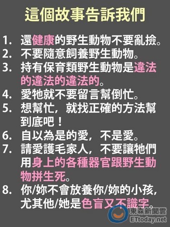 ▼野生動物追思會也製作圖表,讓大家明白這八件事情。