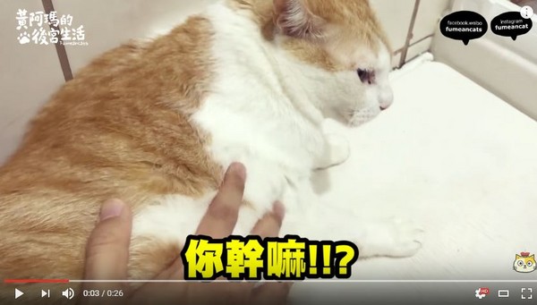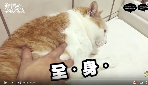 影片中,阿瑪本來優閒地躺在角落,沒想到一隻鹹豬手從後方摸了上來,不停揉捏牠的肉肉,一邊癡癡呢喃「你好可愛……」,甚至一字一字吐出「全、身、都、很、可、愛」,讓牠怒喵「好噁心!」