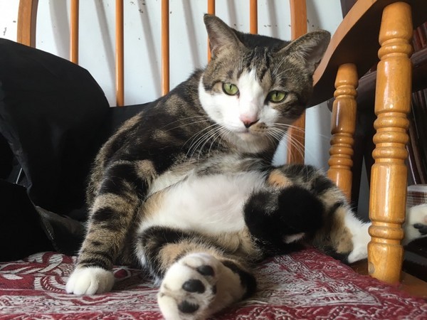 雖說貓咪胖胖的很可愛,但圓滾滾的肚子似乎也會對生活造成一點不便呢!網友「貓女」就出賣家中愛貓的舔毛照,只見貓貓採坐姿,彎腰舔著尾巴毛,卻因為中間卡著一顆肚子,只得盡量拉長脖子,再伸手抓住尾巴舔,顯得十分吃力。