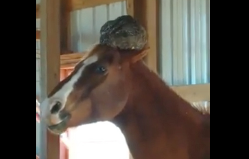 馬跟雞看似是不相干的動物,但有可能牠們可以成為某種朋友,美國奧克拉荷馬州有一名主人南茜(Nancy Elwood)今年初在臉書上分享一段影片,她本來要去馬廄看看家中養的馬匹,沒想到一進去卻發現一個意外的畫面,有一隻雞竟然睡在馬頭上。