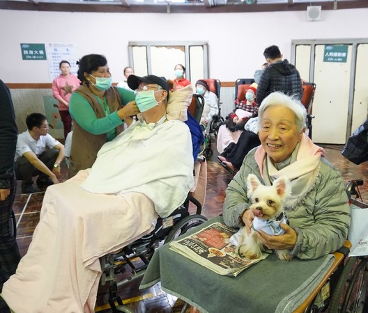 ▲阿公阿嬤們看到可愛的狗狗都笑了。(圖/台灣拜耳提供)