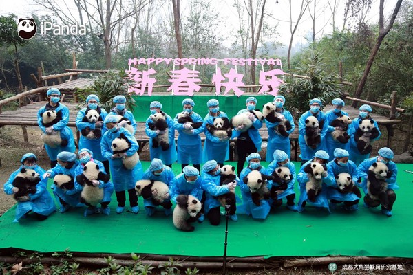 ▲四川成都大熊貓繁育研究基地的23隻小貓熊拍攝賀年影片。(圖/翻攝自粉絲專頁熊貓頻道iPanda,下同)