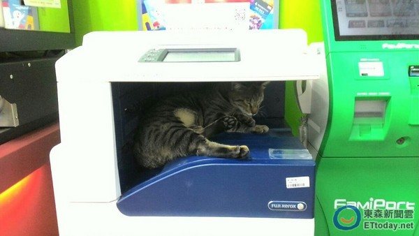 原來兇手是牠!一名網友到超商想要列印,但選取按鍵確認後卻遲遲沒有印出來,低頭一看才發現,原來是一隻虎斑浪貓躲在岀紙閘口,睡得香甜安穩。讓原PO搞笑地說「,失敬失敬,小的立刻速速退下。」一番話笑翻眾人。