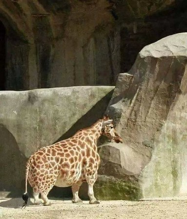網友在「爆笑公社」分享一張照片,一隻動物乍看之下很像長頸鹿,但身形卻是又肥又壯,且脖子還非常的短,讓該網友搞笑的說,「這一定是阿嬤養的長頸鹿。」隨後貼文被轉發到臉書「爆料公社」,許多人看到發福變短的長頸鹿後,紛紛大笑「有一種餓,就是阿公阿嬤覺得你餓。」