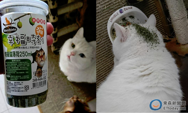 觸怒龍顏是死罪一條,鏟屎官自己皮繃緊一點要多保重。台北的白貓「ㄋㄞ胖」非常熱愛吃東西,看到食物都會衝第一,前幾天要餵貓薄荷時,才剛倒一點點,牠馬上把頭湊到碗裡狂嗑,白色的毛上綠了一大塊,碗裡只剩超迷你份量,其他的全撒在頭上,讓主人哭笑不得的說,「為什麼不等人家倒完啦...」。