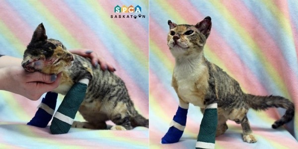 劫後餘生,你一定會等到幸福的。加拿大薩斯喀徹溫薩克屯(Saskatoon, Saskatchewan)一名男子Christian Canfield某天見到一棟房子起火,正拍攝影像準備提供調查時,意外發現一隻小貓從熊熊大火中逃竄出來,一跛一跛的哭叫。