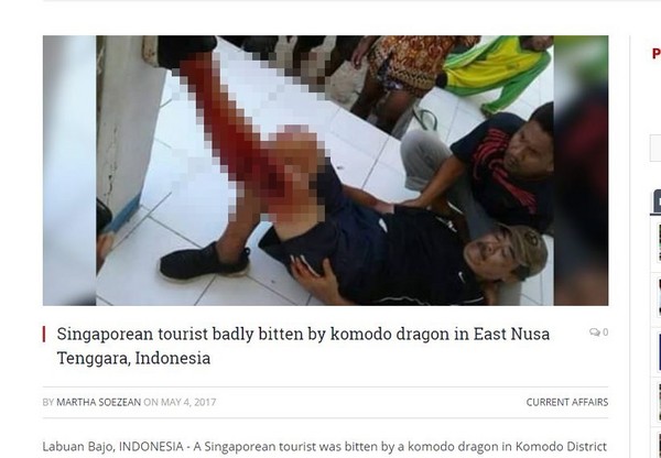 新加坡68歲的羅姓( Loh Lee Aik)旅遊攝影師日前專程前往印尼科莫多島(Pulau Komodo),他想拍攝世界上最大的蜥蜴科摩多巨蜥(科摩多龍,KomodoDragon),但卻在過程中被咬傷。當地警方表示,因為之前科摩多巨蜥攻擊過山羊致死,所以才會前往拍攝。