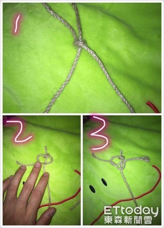 ▲麻繩打結後,按照圖示2、3步驟反覆編織。(圖/網友張藝瓊提供)