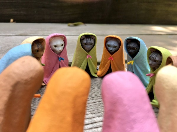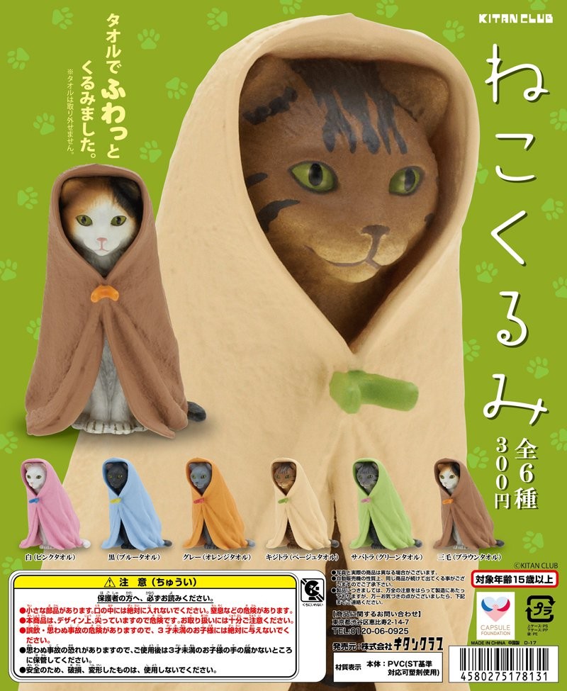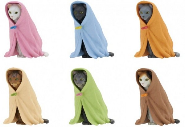 總共有六種花色的貓咪搭配不同顏色的毛巾,只是不知道是不是因為眼神太銳利的關係,看起來好像煞氣很重啊...